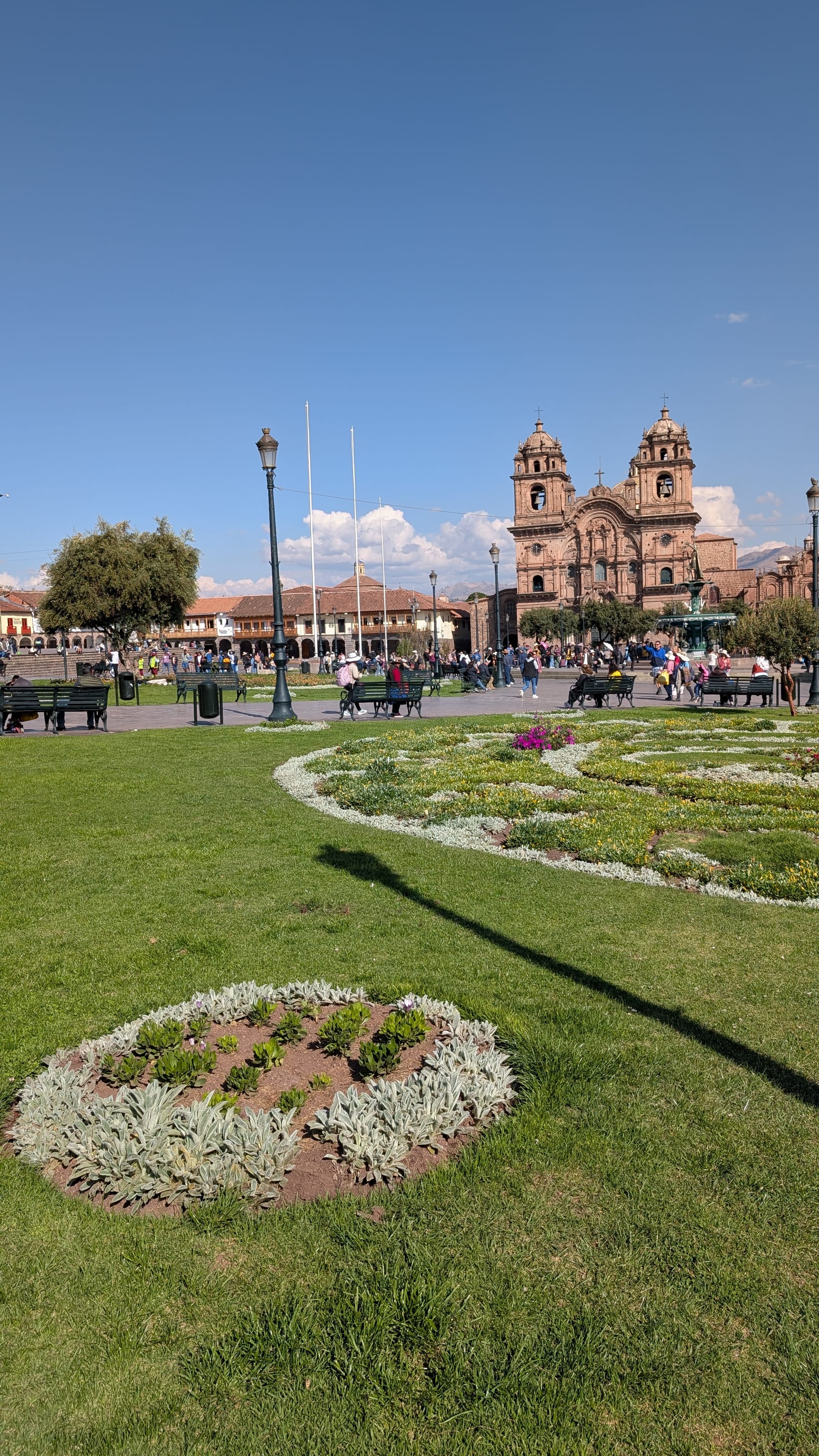Ja siis lopulta pääsin myös Cuscoon. Tämä maailman yhdeksänneksi korkeimmalla oleva kaupunki vajaa 3400 metriä merenpinnasta. Alkuun se ei tuntunut vaikuttavan, mutta hetken päästä huomasi että kaikki portaat tai mikään rehkiminen tuntuu kuin kohta loppuu henki. Ja pieni päänsärky. Paikalliset juovat lääkkeeksi kokateetä. Ja sitä saakin täällä joka hotellista. Oman hotellin respa tyrkytti sitä kupin heti alkuun. Mutta siinä ei itse huumetta ole juurikaan joten pilveen ei pääse näillä määrillä.