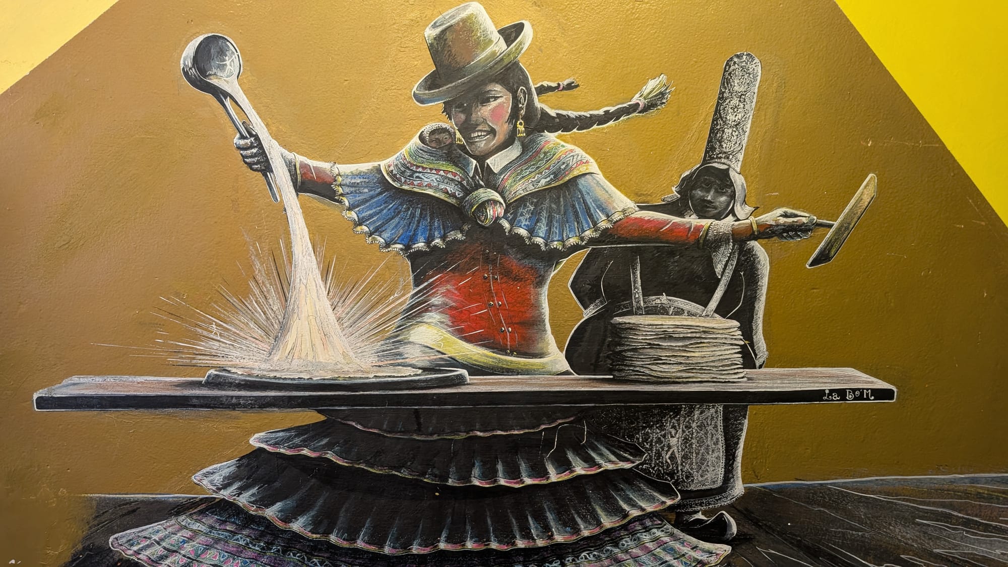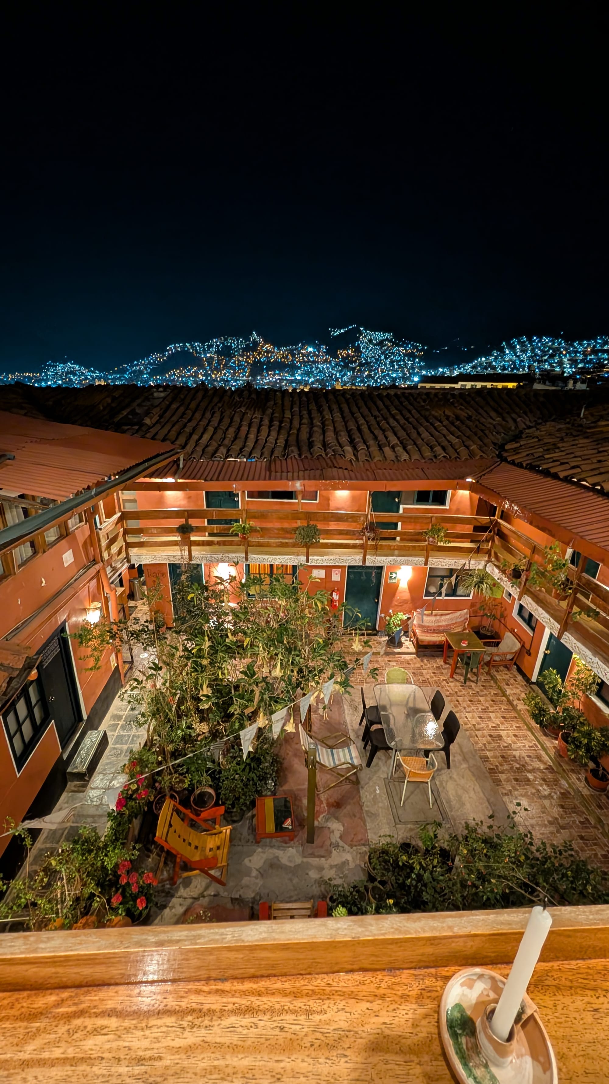 Vaihdoin majapaikaksi Crepeteria & Hostel La Bo'M nimisen hostellin. Tämä on siitä kiva, että täällä on paljon muitakin reissaajia ja aamupalaa syödessä voi helposti jutella muiden kanssa ja kysellä niiden suunnitelmista. Täältä saa siis myös ruokaa jota he kuvaavat ranskalaisen ja perulaisen keittiön yhdistelmänä. Ja myös maisema terassilta on aika hieno.