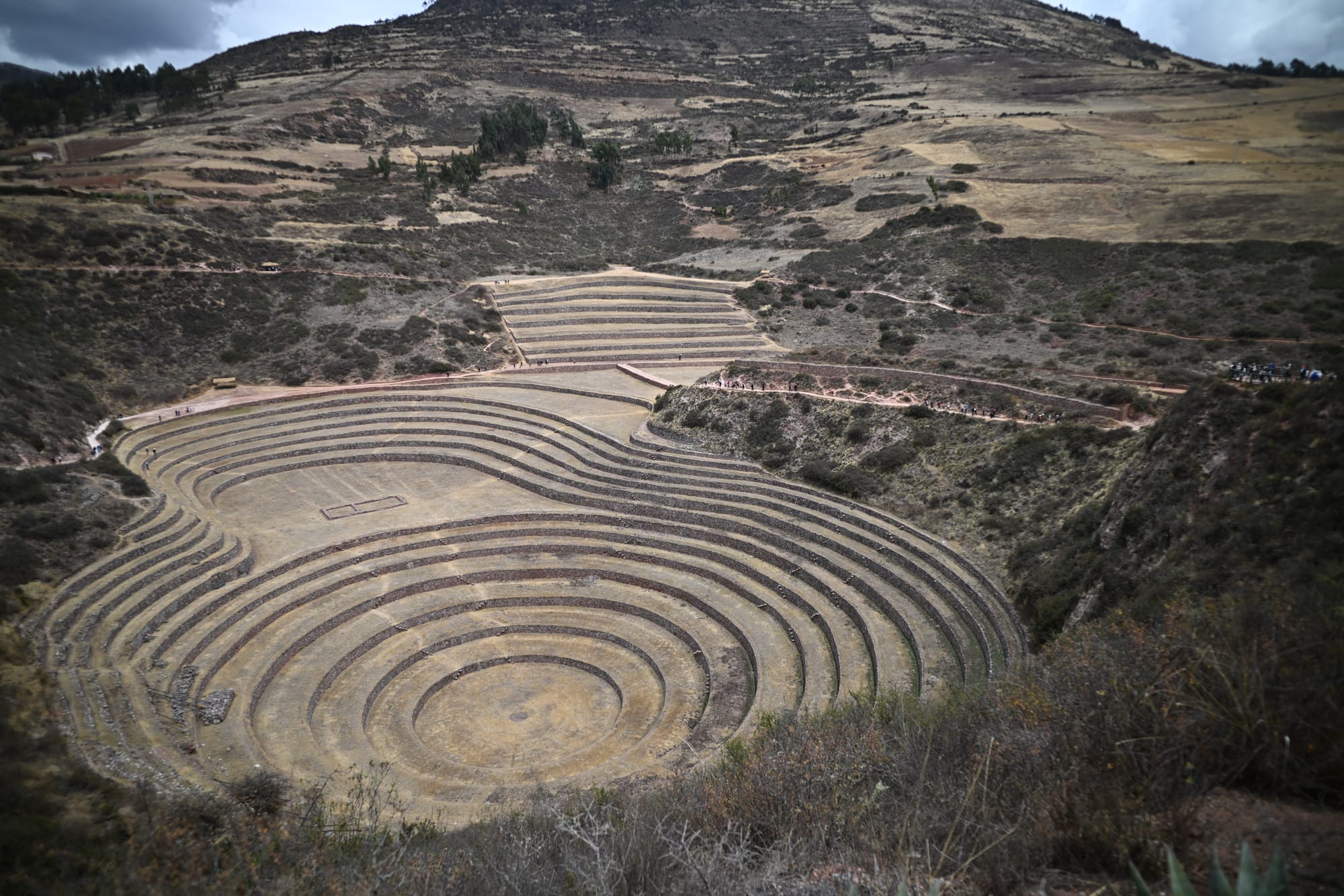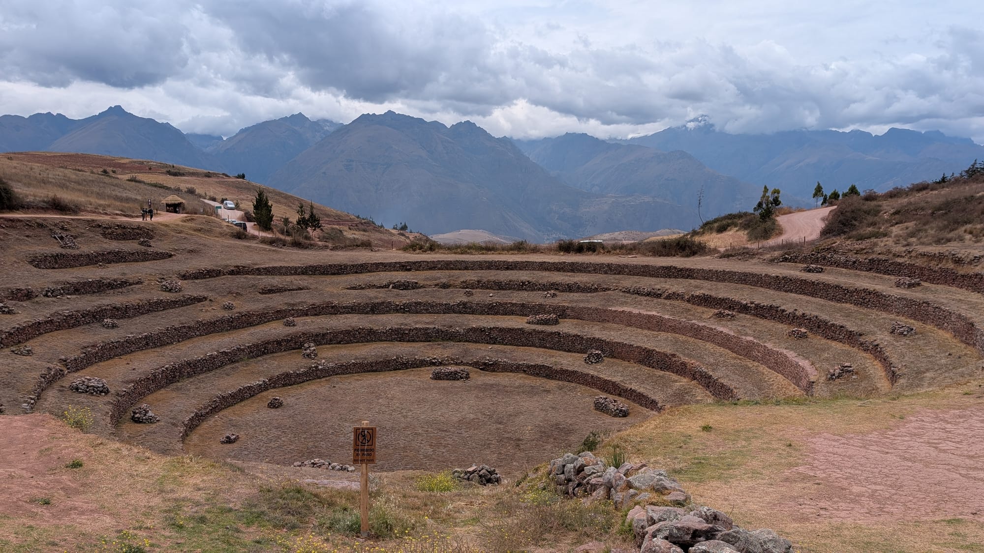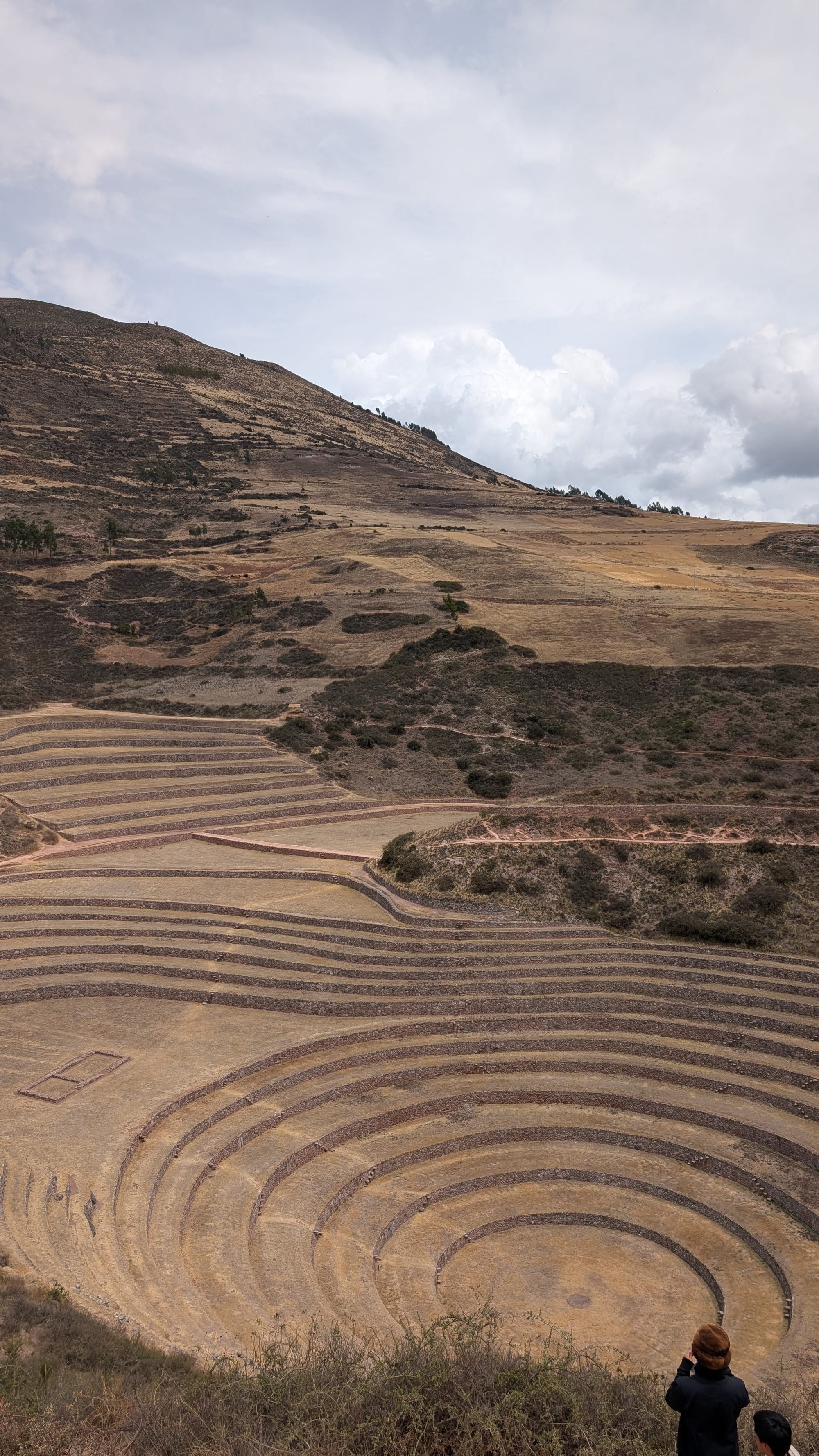 Inkojen pyhässä laaksossa meillä oli kolme kohdetta. Ensimmäinen nimeltään Moray. Tämä on vanha inkojen viljelyterassi. Eri tasoilla on eri lämpötila ja se soveltui siten erilaisten kasvien viljelyyn.