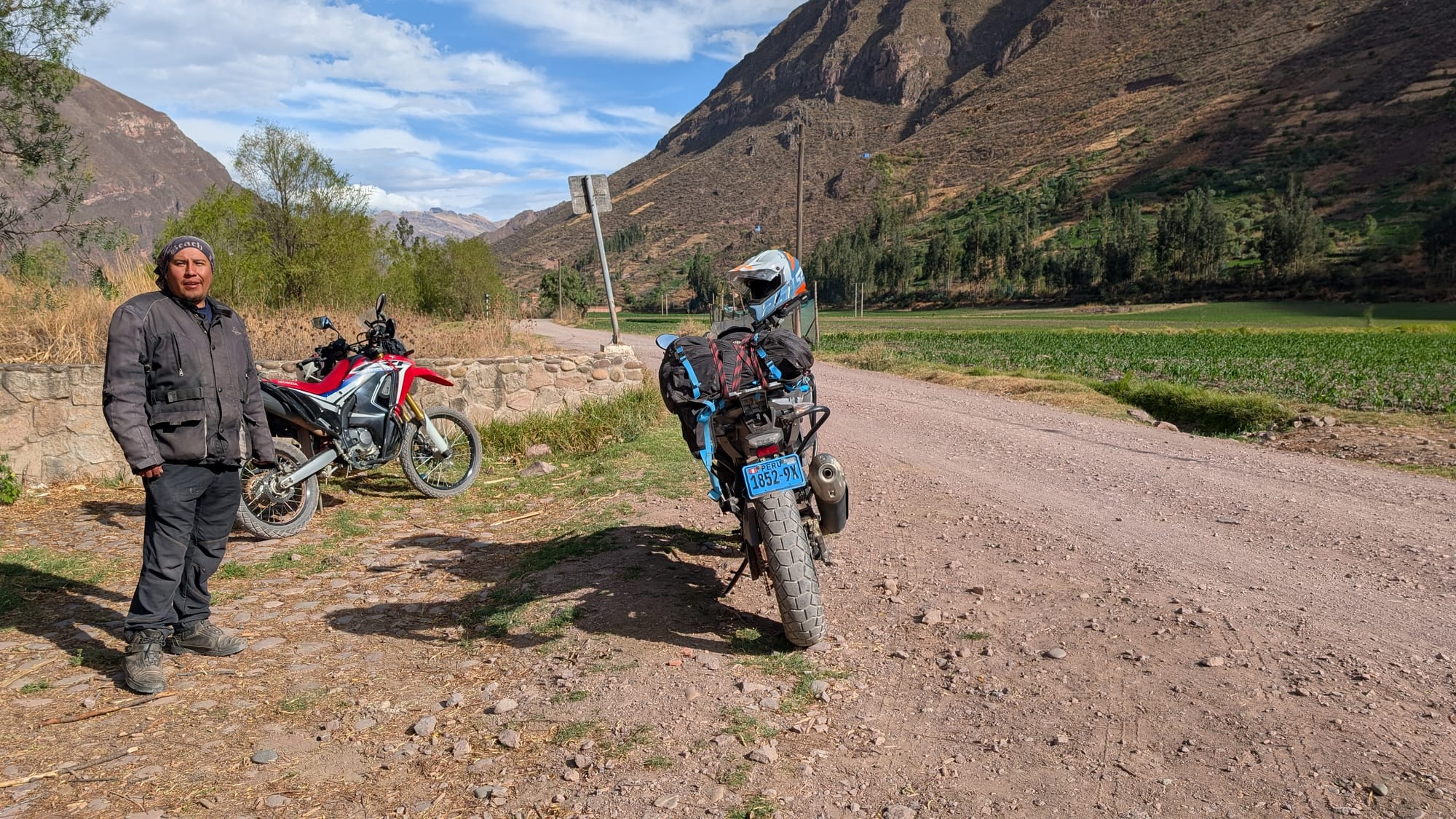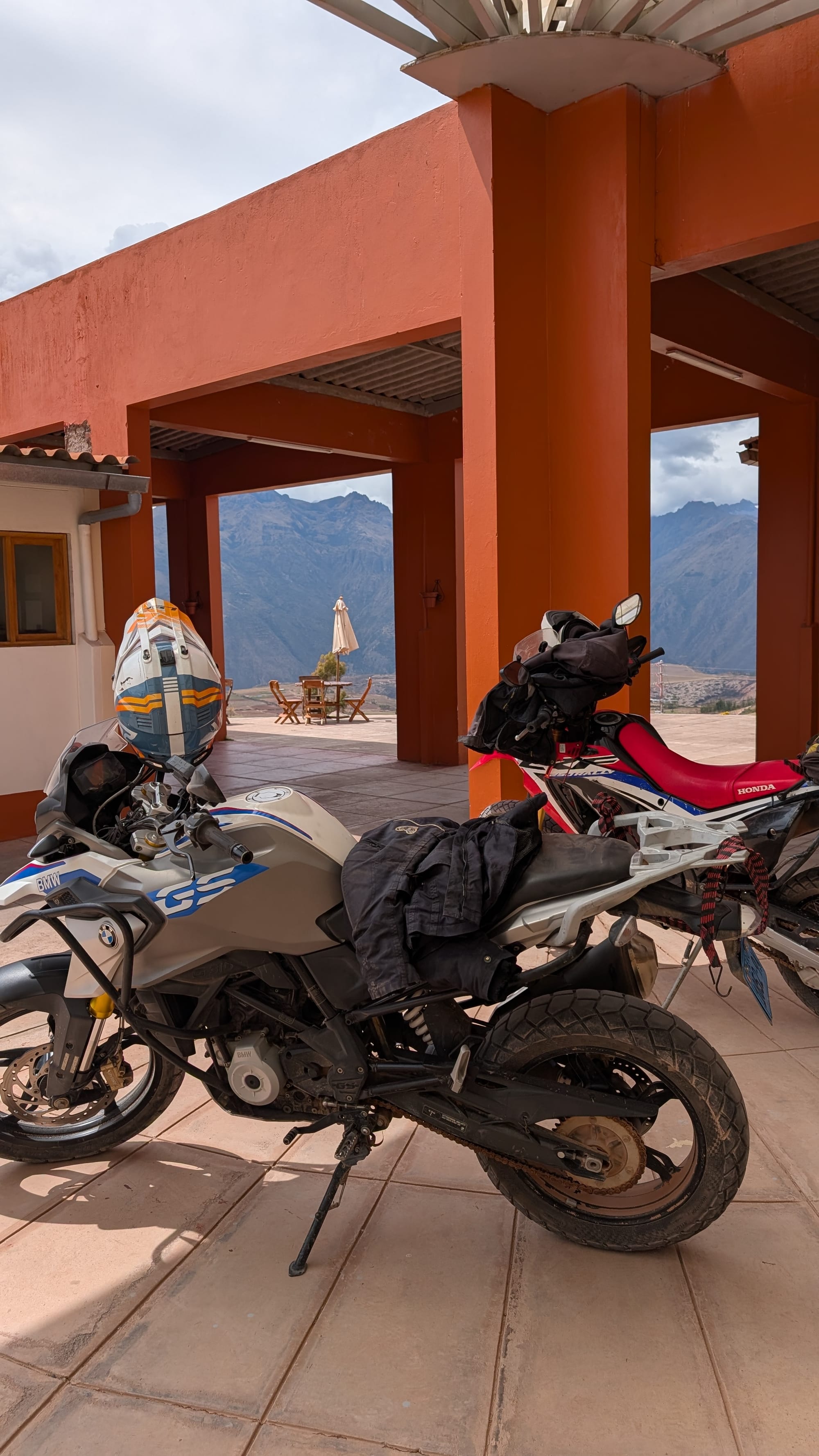 Olo Cuscossa oli edellisenä päivänä ihan ok, joten ajattelin että ehkä tässä voisi tehdä jotain muutakin kuin kaupunki hengailua ja päätin varata moottoripyöräreissun sacred valleyhin. Laittelin edellisenä iltana whatsappissa viestiä firmalle joka moisia retkiä järjestää. Hinta oli hieman kalliimpi kuin mitä netissä ilmoittivat, mutta ilmeni, että heillä ei ollut ryhmää tälle päivälle tiedossa joten lähtisin kaksistaan oppaan kanssa. Tämä kuulosti hyvältä! Aamulla puoli yhdeksältä olikin taksi odottamassa ja ajelimme vähän syrjemmässä olevan moottoripyöräretkijärjestäjän toimistolle. Tehtiin tarvittavat paperityöt ja sitten hypättiin pyörän päälle. Sain 300 kuutioisen BMW endoron. Tosin en ole ihan varma oliko tämän kytkin ihan ehjä. Kierroksia joutui laittamaan liikkeelle lähtiessä lähemmäksi 5000 että pyörä ei hyytynyt.