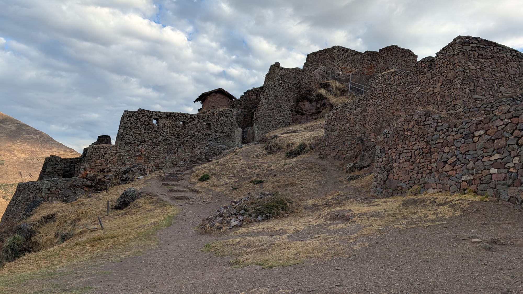 Sademetsän jälkeen oli tarkoitus levätä hetki ja totutella olemaan hieman korkeammassa. Seuraava isompi ohjelma olisi Salkantay vaellus Machu Picchulle ja se menee n. 4600 metrin korkeudessa. Noin korkealle ei voi mennä ihan tuosta vaan, tai muuten tiedossa on vuoristotaudin oireita. Suositus on siis, että oleilee muutaman päivän Cuscossa jossa korkeus on 3400 ja totuttautuu siinä alhaisempaan ilmanpaineeseen. Itselläni olo Cuscossa oli suhteellisen normaali. Rappusia kiiveessä hengästyy helposti, mutta muuten ei päänsärkyä yms. Päätinin ekana Cusco päivänä ottaa ohjelmaksi läheisellä rauniolla käymisen. Eli kohteeksi Sachayhuaman (tämä lausuttuna on jotakuinkin sexy woman). Se on 3700 metrin korkeudessa. Kyseessä on vanha inkojen linnoitus, jonka tarkoitus oli ilmeisesti suojella Cuscon pyhää (sacred, ei holy) kaupunkia. Jossain vaiheessa kuitenkin espanjalaiset ehtivät valloittamaan paikan ja tietenkin samalla keräämään sieltä kiviä omiin projekteihinsa. Mutta edelleen jäljellä on kohtuullisen komea linnoitus!