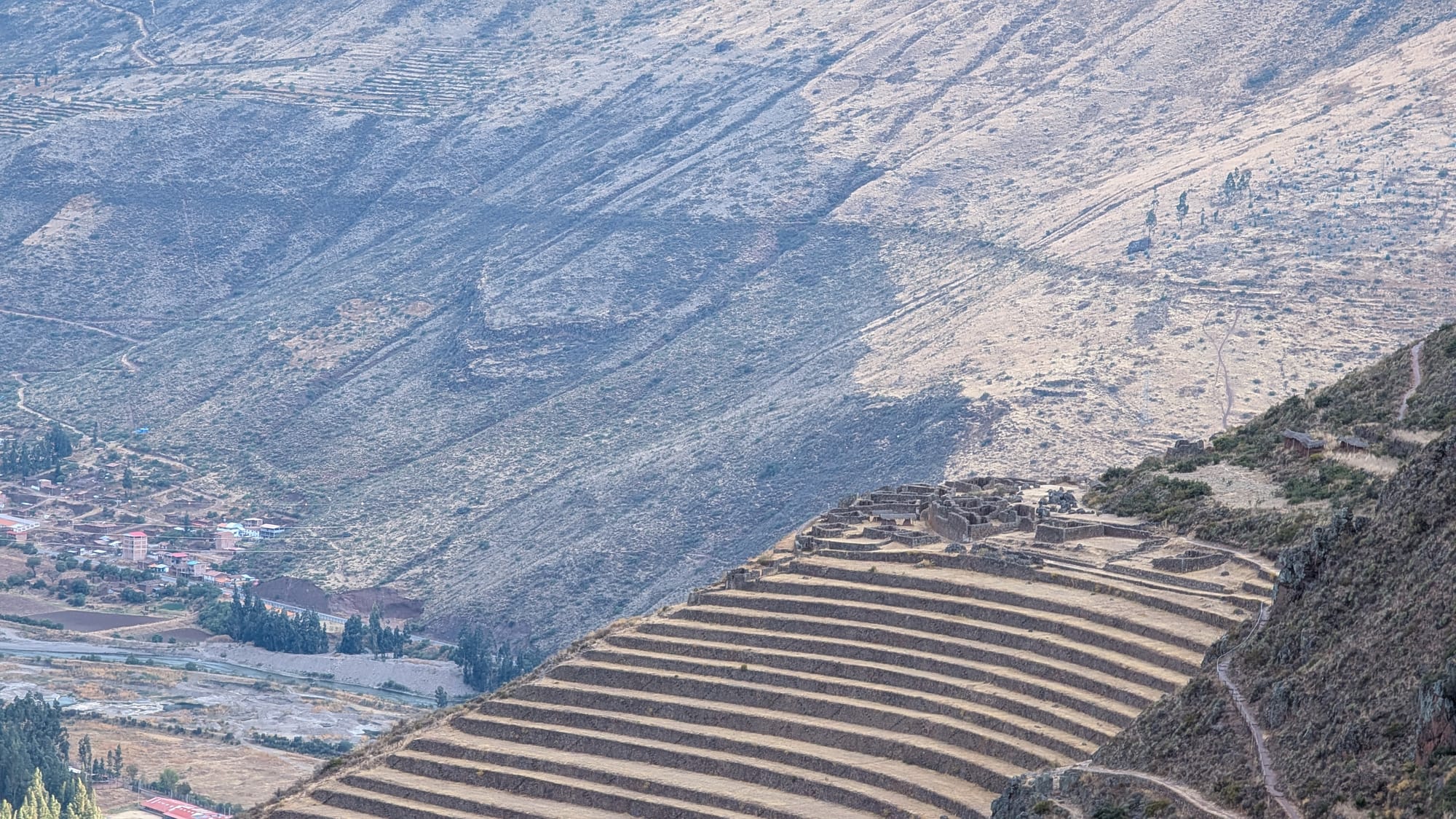 Viimeinen matkakohde oli Pisac-niminen kylä, jossa oli myös kuuluisia inkaraunioita. Nämä eivät ole linnoitus vaan ennemmin tavallista asutusta. Mutta oli taas aivan järkyttävän kokoinen alue kierrettävänä. Alkaa nämä rauniot kärsimään pientä inflaatiota kun koko ajan on toinen toistaan hienompia kokonaisuuksia.